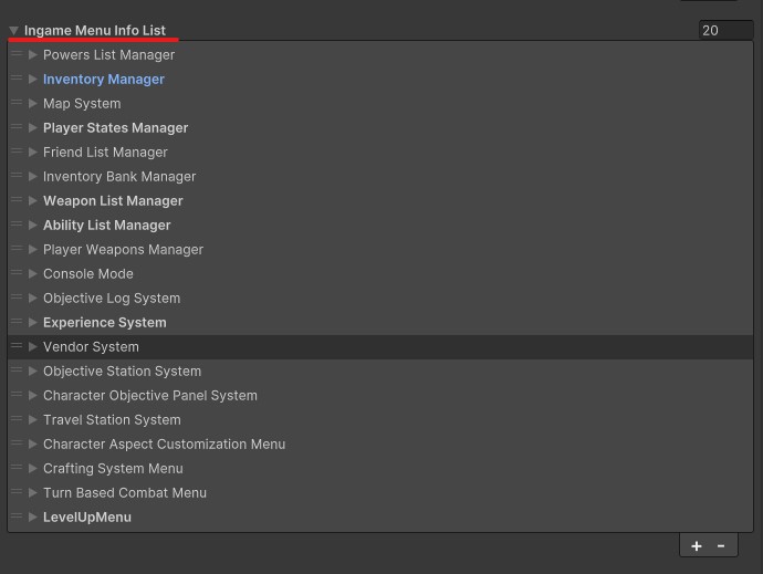 インスペクターのMenuPauseの中にIngame Menu Info Listがあるので探します。